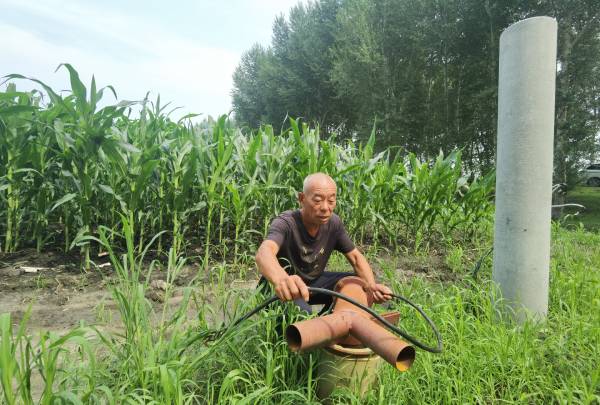 7月12日中午12時許,57歲的李長榮正在富興村與民興村交界處的自家地里查看墑情。 仔細察看了一下地頭電井,回身又撫摸起不斷躥高的玉米,眼瞅著比道西沒有電井灌溉的高出一大截,李長榮樂得合不攏嘴。“要擱往年,我這2公頃玉米用小井澆一次,咋也得半個月,費時、費力不說,柴油還用不少。你再看現在,頂多兩天就全搞定,讓咱高興的可不是省錢省事那么簡單,每公頃玉米能增收1000斤左右。”
