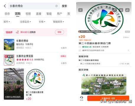 登錄美團(tuán) APP,或者在微信里打開(kāi)美團(tuán)小程序,搜索 “長(zhǎng)春農(nóng)博會(huì)”或“長(zhǎng)春農(nóng)博園”,就能找到購(gòu)票頁(yè)面進(jìn)行下單。游玩當(dāng)日,無(wú)需換票,掃碼就能輕松入園。