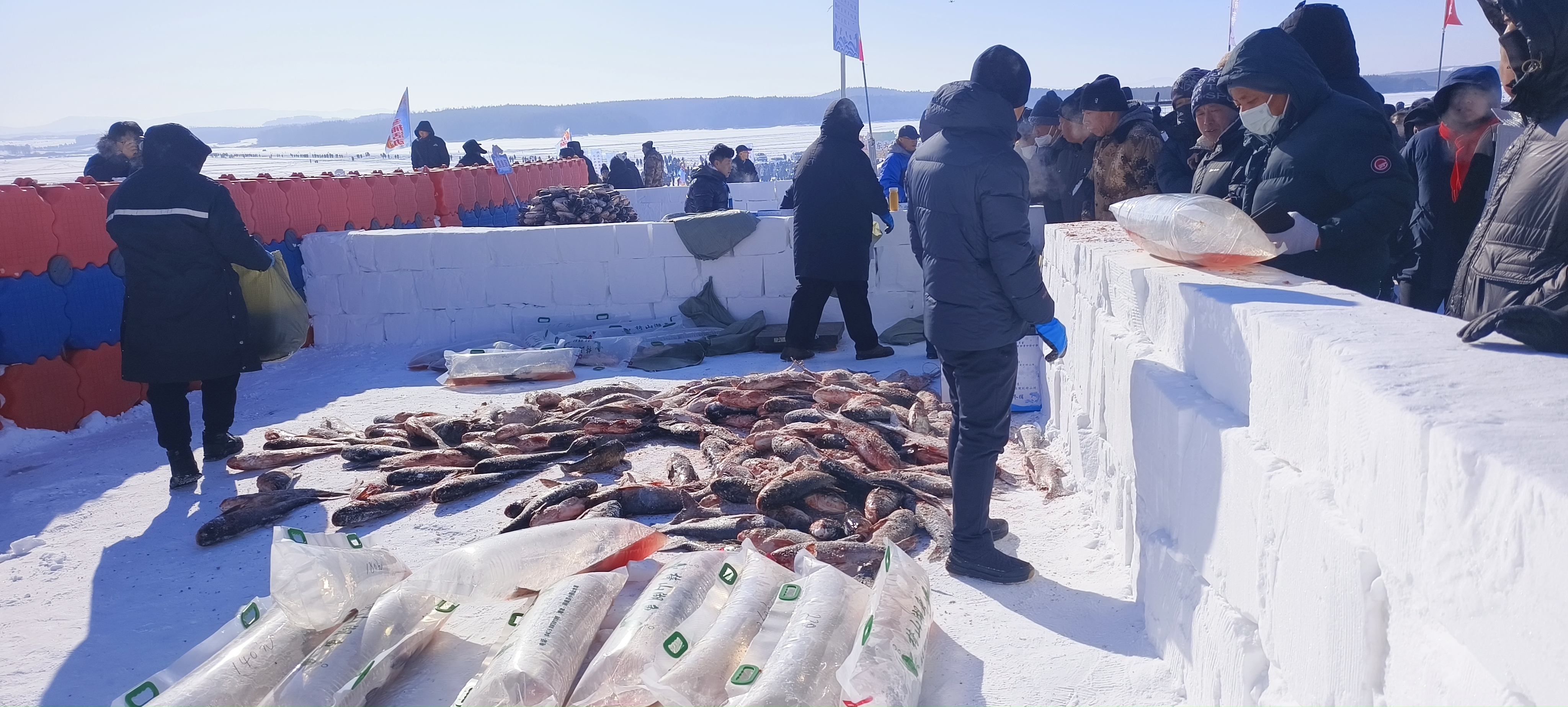頭魚拍賣,漁獵文化綻放新彩 在歡樂喜慶的氣氛中,頭魚拍賣的精彩環節將“冰湖騰魚”的吉祥氣氛瞬間拉滿。 這次冬捕活動共拍賣6條新鮮漁獲,競買者踴躍舉牌,最終頭魚以6.8萬元成交,不僅拍出了“年年有余”的好彩頭,更將現場喜慶氛圍推向了高潮。 記者看到,這次冬捕活動將漁獵文化與冰雪旅游融合創新,關東大集、滑冰戲雪、特色美食、民俗體驗等各類活動為廣大游客創造了沉浸式體驗機會。 關東大集上,各鄉鎮的特色農產品讓人們目不暇接,游客們穿梭在各個攤位之間,仔細挑選著心儀的產品。冰上娛樂區,游客可盡情體驗雪滑梯、冰陀螺等冰雪項目,滿足了不同年齡段游客的娛樂需求;鮮魚品鑒區,冰泉水烹飪新鮮漁獲,讓游客品味椅山湖魚的鮮美,感受“吃魚迎新”的年味;漁貨展銷區,工作人員為前來選購的游客提供真空打包、注氧等服務,真正實現“漁貨直達,捕完即售”。 “我們從廣東過來,專門帶孩子體驗冰雪樂趣。”游客黃姘艷笑著說,“坐馬車、看捕魚,這些都是電視里才見過的,親身感受特別有意思。”