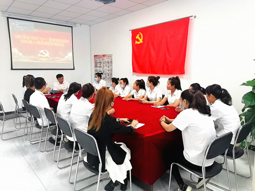 隨后,羅興國(guó)同社區(qū)黨員干部職工圍坐一起,以《緬懷黨的歷程、永葆奮斗精神》為主題,重溫了建黨百年“七一”重要講話精神,在不斷汲取黨史力量,弘揚(yáng)偉大建黨精神中,進(jìn)一步推動(dòng)社區(qū)“大黨委”在黨建聯(lián)盟、志愿聯(lián)動(dòng)、治理聯(lián)心等組織引領(lǐng)中的有效發(fā)揮;在堅(jiān)持以人民為中心的司法理念中,進(jìn)一步鞏固“我為群眾辦實(shí)事”、“作風(fēng)建設(shè)年”、“加強(qiáng)管理年”及“法院高質(zhì)量發(fā)展”工作成果;在有效提升群眾安全感、獲得感、幸福感的同時(shí),把優(yōu)質(zhì)的司法為民服務(wù)新舉措同推動(dòng)基層社會(huì)治理能力現(xiàn)代化有效銜接,實(shí)現(xiàn)全社會(huì)始終與黨同心同德、共建共治平安和諧穩(wěn)定家園。