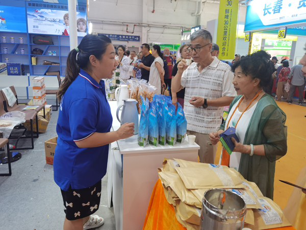 “大家先嘗一嘗我們的產品,一共兩種口味炒貨,分禮盒裝、家庭裝和日常休閑裝,絕對的原汁原味新疆特產。”8月22日,在長春農博會3號館吉林援疆展位,新疆阿勒泰地區福海縣豐吉爾食品有限公司參展代表王斯恩,大聲地向一波又一波顧客熱情介紹著。