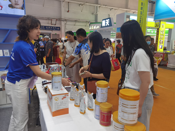 一旁新疆阿勒泰哈納斯乳業有限公司的銷售代表孫海祥也一直沒閑著,駝奶粉、沙棘汁、駝奶片迅速被“搶購一空”,于是趕忙打電話和廠家“告急”。 “吉林省援疆指揮部為我們搭建這么好的平臺,其實這相當于對我們新疆企業產品進行最好的宣傳推廣,真是太棒了。”孫海祥感慨道。