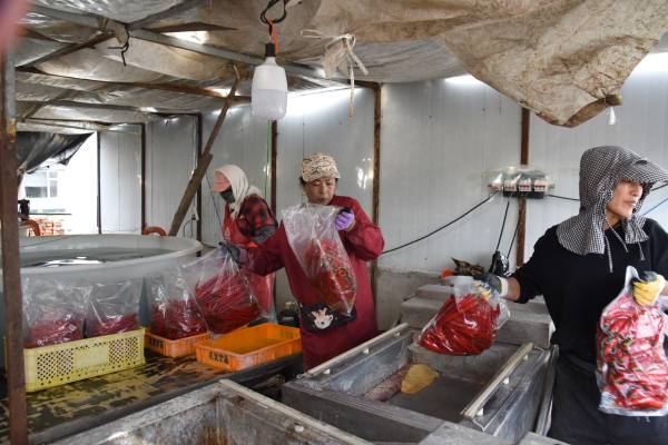 為減少流通環節、延長產業鏈條、實現產品升級增值,徐敬偉又把目光投向了加工企業的建設上。每年僅辣椒遴選、掰把兒、裝箱、打包,就為當地群眾帶來近百萬元收入。辣椒的移栽、采摘、裝卸、運輸等環節,又為村民提供了創收機會,還拉動了餐飲、洗浴、住宿等產業在瞻榆鎮的蓬勃發展,成了當地新的經濟增長點。