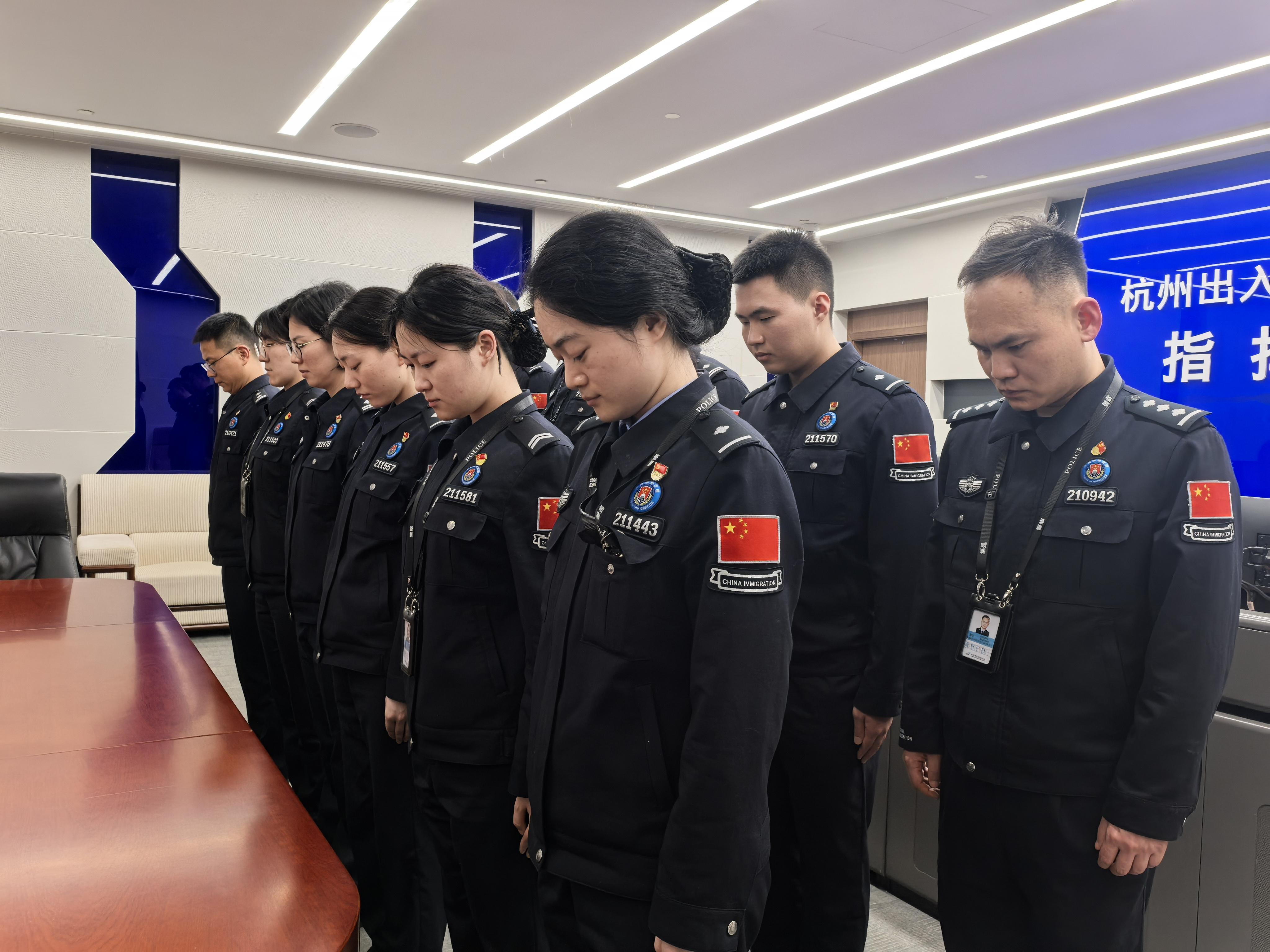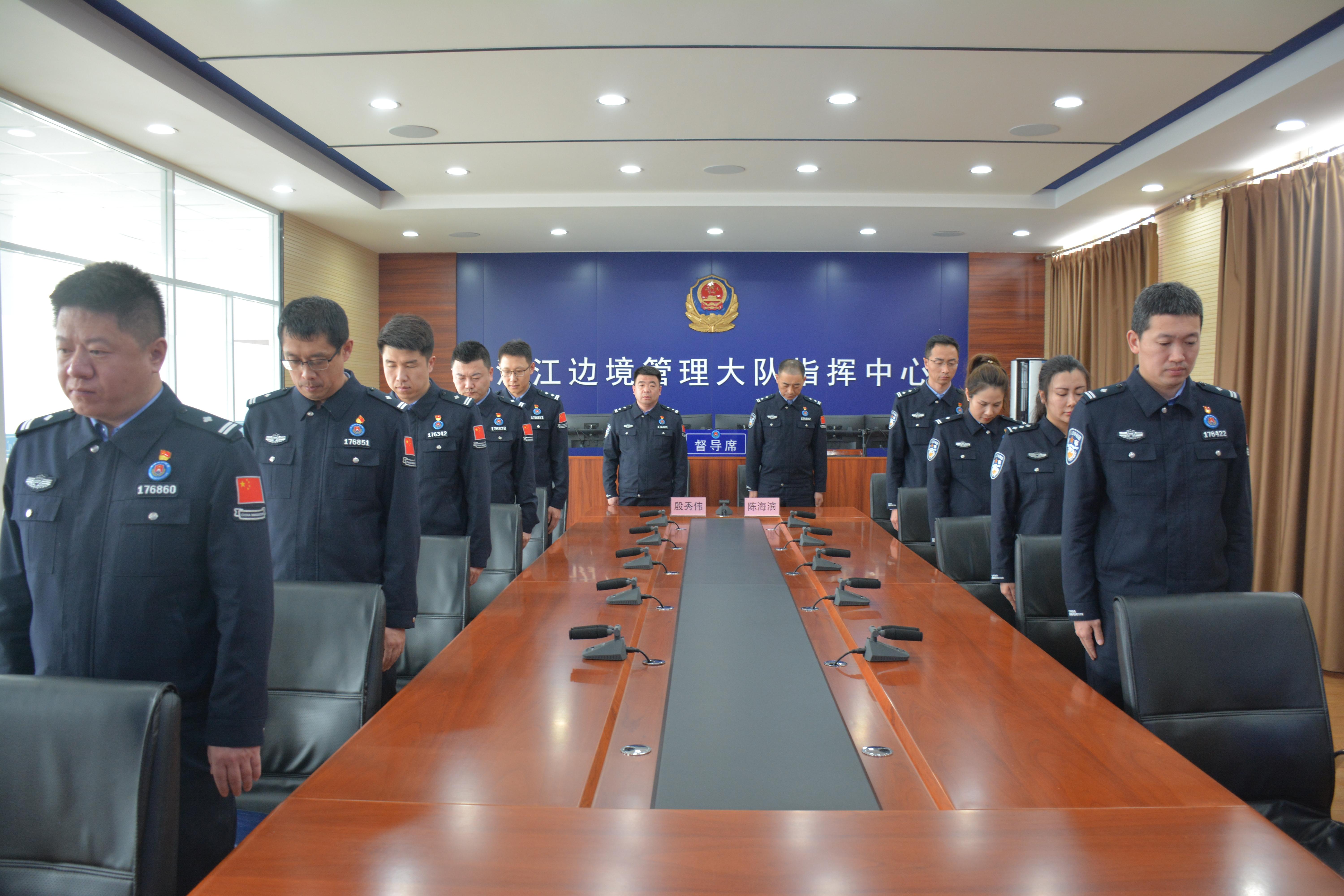 在清明節(jié)來臨之際,白山邊境管理支隊(duì)渾江大隊(duì)黨支部與浙江杭州邊檢站執(zhí)勤二隊(duì)黨支部聯(lián)合開展“云祭英烈,共緬先魂”線上聯(lián)建共建活動(dòng)。活動(dòng)現(xiàn)場(chǎng)氛圍莊嚴(yán)凝重,民警們警容嚴(yán)整,神情肅穆,細(xì)微表情中透著對(duì)英烈的敬仰追思。面對(duì)英烈紀(jì)念視頻,全體人員整齊肅立,懷著崇敬之心,為英烈默哀致敬。