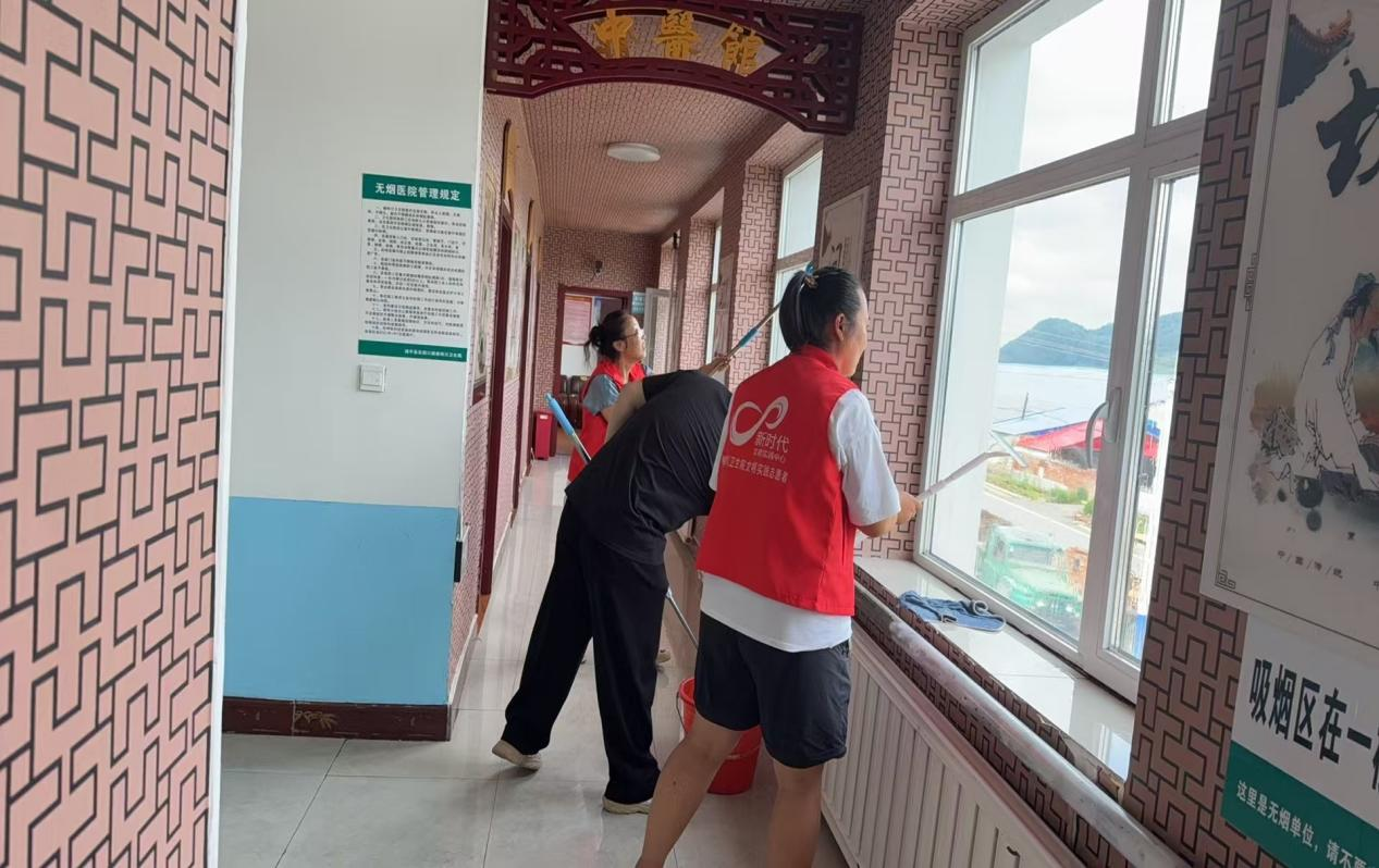 行動期間,榆樹川衛生院的醫務人員和行政后勤人員熱情高漲、干勁十足,大家分工合作、密切配合,對門診大廳、候診區、走廊等公共區域進行了徹底的衛生清掃。同時,針對醫療處置重點部位、高頻接觸部位和衛生死角認真開展了清洗消毒無害化處理,并規范整理醫療物品與辦公區域的器具擺放,切實做到環境治理全覆蓋。行動過程中,每個人都不怕臟、不怕累,“單位是我家,清潔靠大家”的思想認同體現在所有人的行動上,落實到細節中,衛生院內外環境煥然一新,呈現出清新、優雅、適宜的全新氛圍,得到了到院就診患者的高度評價。