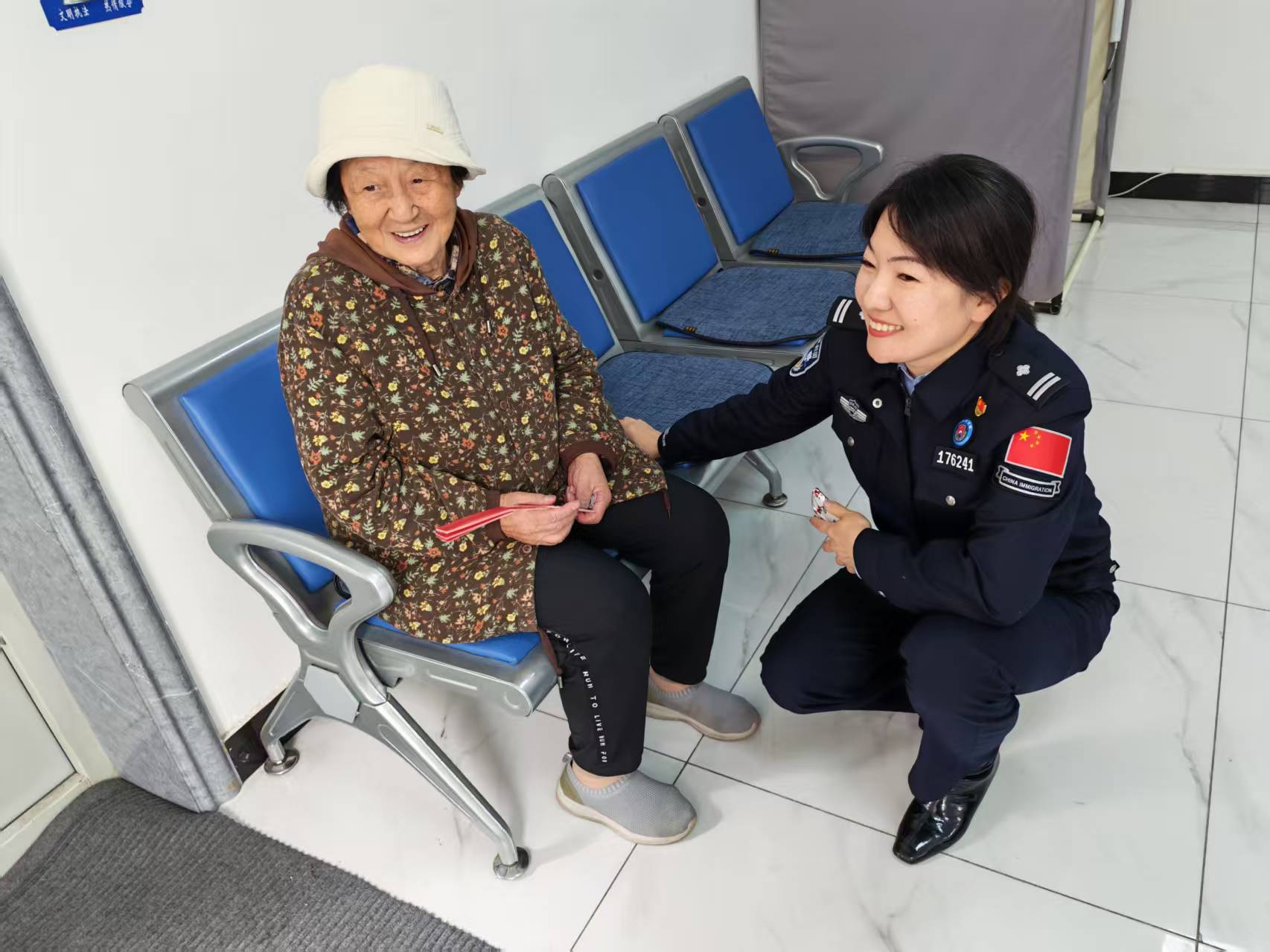10月6日中秋當天上午,派出所接到群眾求助,一位來自遼寧大連的八十歲李阿姨與家人走失,未帶手機,只依稀記得女兒、女婿的姓名。民警迅速趕赴現場,將站在寒風中神情焦急的老人接回所內,一邊遞上熱水為她驅寒,一邊通過系統比對信息,很快便成功聯系上其女兒。在等待家屬的過程中,民警不僅貼心送上月餅、陪伴聊天緩解老人的緊張情緒,更細致地介紹G331國道沿途的四季風光,使老人從最初的忐忑不安逐漸展露笑顏,連連表示“吉林人親景美,以后要常來看看”。