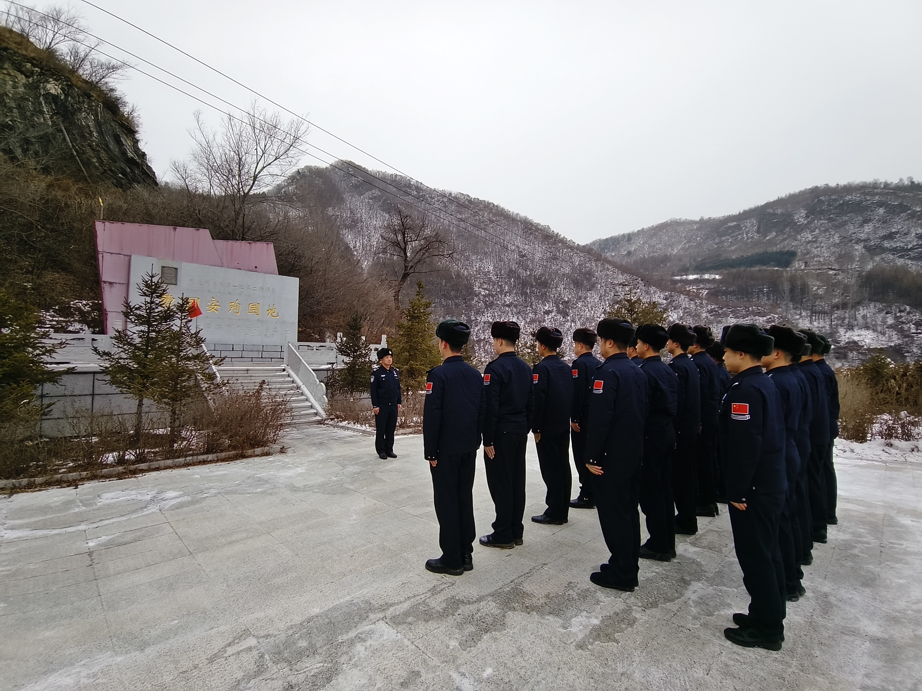 歷史川流不息,精神代代相傳。默哀與瞻仰之后,一場重溫入黨誓詞的活動在紀念碑前莊嚴舉行。"我志愿加入中國共產黨,擁護黨的綱領,遵守黨的章程,履行黨員義務......隨時準備為黨和人民犧牲一切,永不叛黨!"面對鮮紅的黨旗,全體民警高舉右拳,鏗鏘的誓言在寒風中回響,字字千鈞,擲地有聲。這誓言,是對長眠于此的英烈的鄭重告慰,是對初心使命的再度銘記,更是一次穿越歷史的精神對話與靈魂洗禮。此刻,此情此景,讓每一位民警對忠誠與奉獻有了更切膚的體悟。正如一位民警代表所言:“站在英雄倒下的地方,我們更能理解‘忠誠’二字的千鈞重量。這誓言,必須用一生的行動去踐行。”