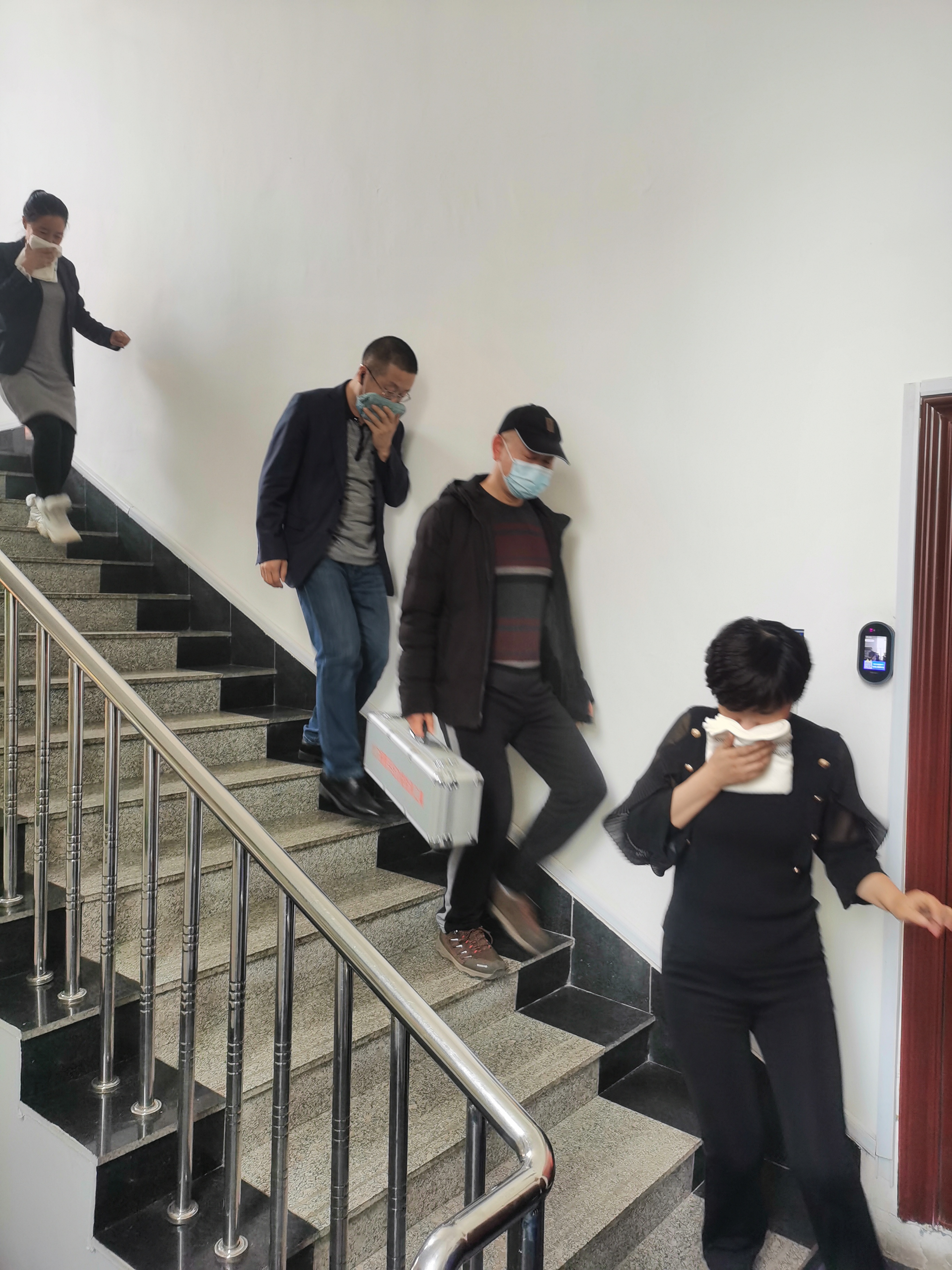 隨著火警信號的響起,演練正式開始。應急指揮部迅速啟動火災報警及應急程序,各應急小組各司其職,第一時間按照預案做好規定動作。各樓層層長在接到預警鈴聲后,立即組織帶領員工按照指定逃生路線迅速疏散撤離。接著,大家在院內進行了滅火器滅火實操演練。