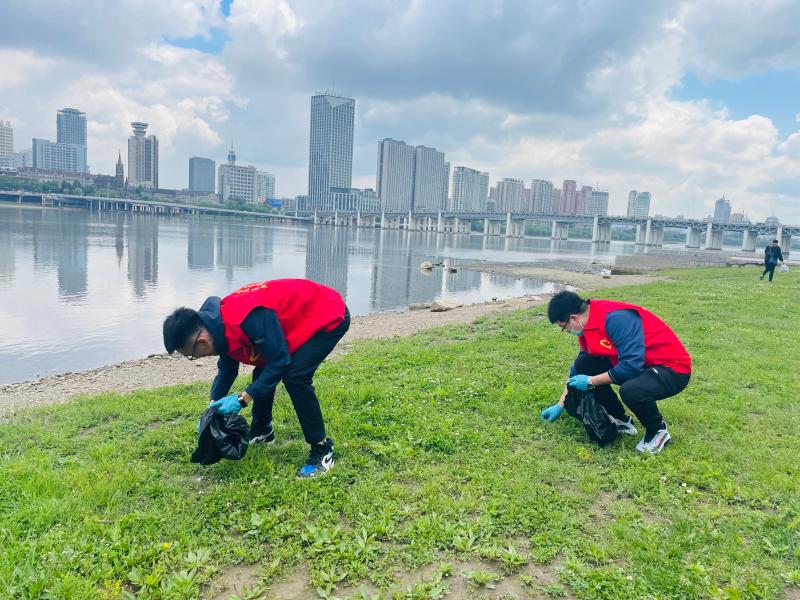 6月6日早,郵儲銀行吉林市分行青年志愿者服務隊17名隊員來到吉林市江灣大橋和臨江門大橋之間的松花江南岸,沿江清掃雜物,撿拾江道邊河灘地的白色垃圾、煙頭等廢棄垃圾,用實際行動為家鄉環境面貌、提升城市活力作出貢獻。