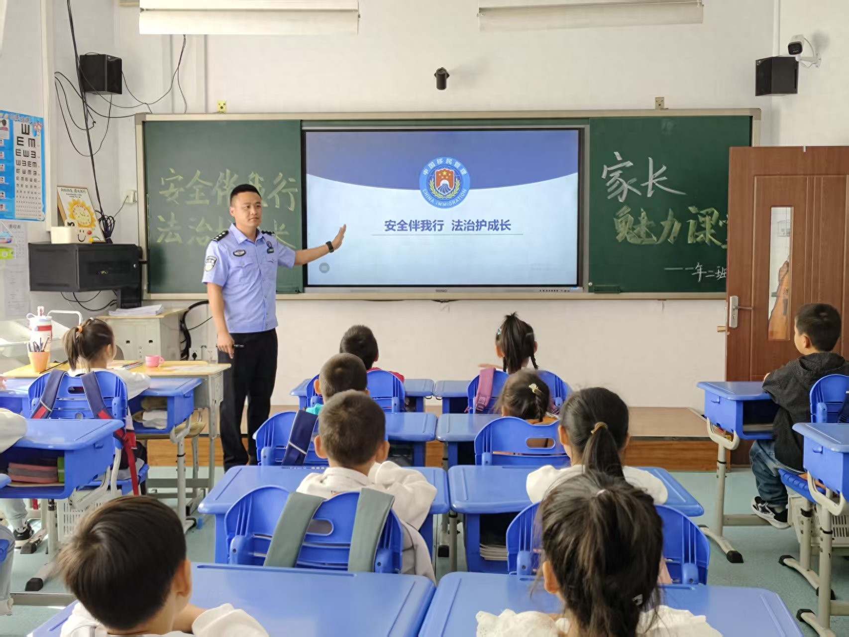 近日,延邊邊境管理支隊東方紅邊境檢查站民警走進長白山池北區第三小學一年級教室,為同學們帶來了一堂生動有趣的安全教育課,用通俗易懂的方式為“萌娃”們筑起安全防線。