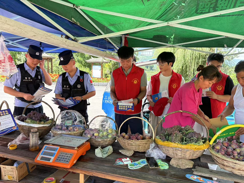 廣場(chǎng)一角,藍(lán)紅身影格外醒目。為幫果農(nóng)守好“豐收錢袋”,民警們化身“安全科普員”,結(jié)合近期發(fā)生的真實(shí)案例,用通俗易懂的話講解“訂單詐騙”“預(yù)付定金陷阱”等詐騙套路。一旁的西部計(jì)劃志愿者們則忙著分發(fā)反詐宣傳單和交通安全手冊(cè),把“別貪小便宜”“轉(zhuǎn)賬多核實(shí)”的提醒送到每位攤主心中。