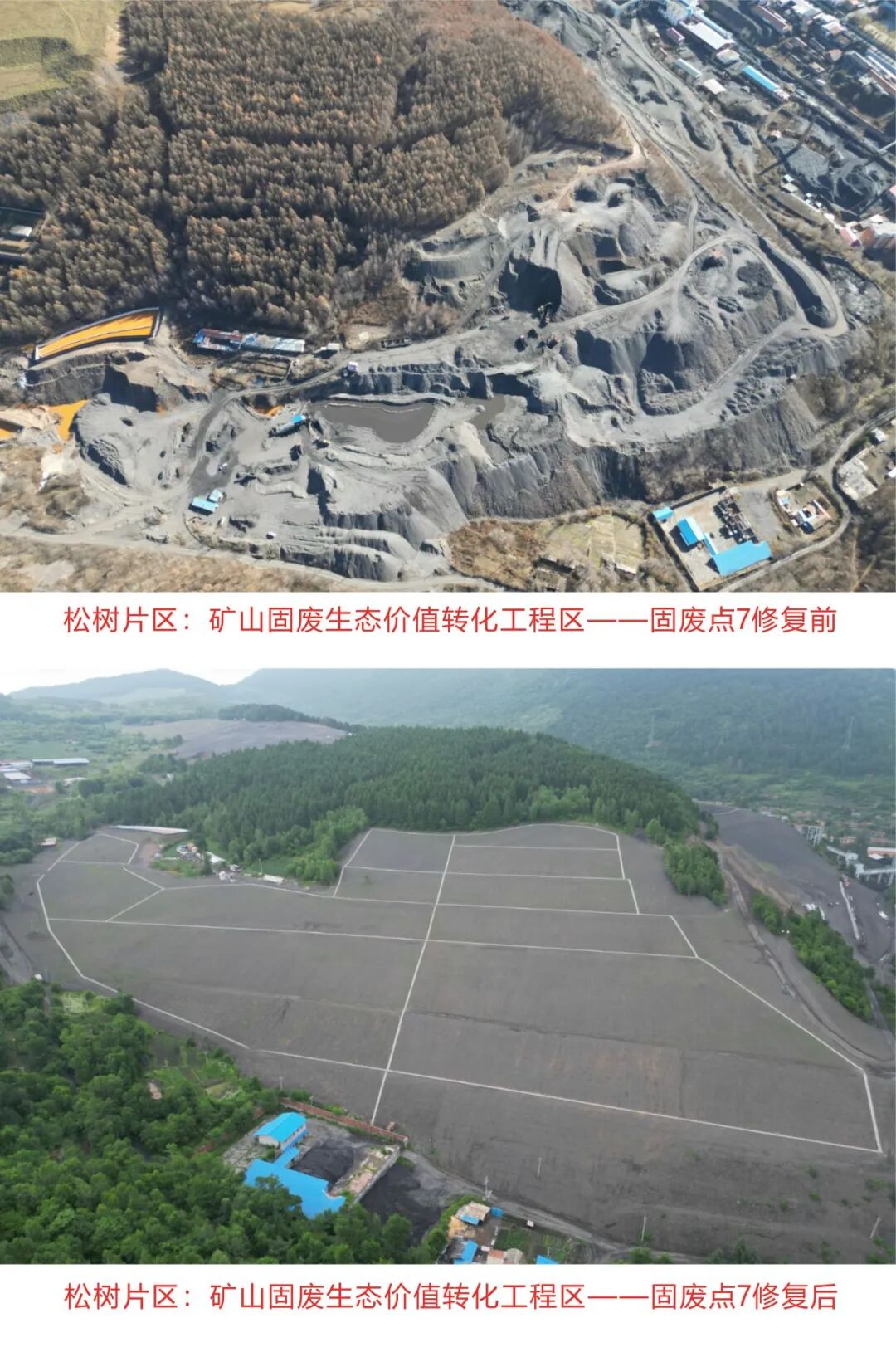 截至目前,從礦山修復角度,整體礦山生態修復已完成總面積817.56公頃,修復廢棄礦山(礦點)數量36個,地質環境隱患點消除7個,邊坡治理面積63.03公頃,土地損毀工程96.39公頃,林地提質改造面積549.28公頃,耕地質量提升101.49公頃,水源涵養河道治理長度5560米、治理面積2.7公頃,水土流失治理4.67公頃,讓廢棄礦山逐步恢復生機。