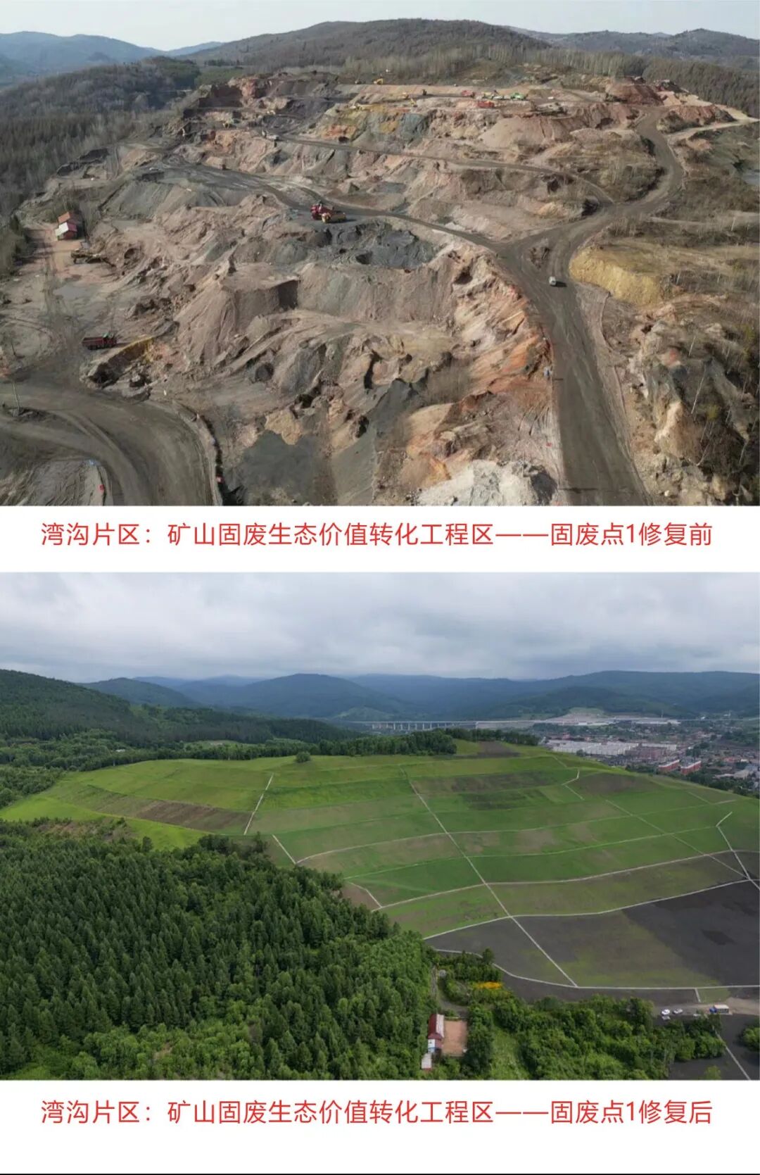 過去,一走進灣溝鎮,看到的不是千瘡百孔的廢棄礦山,就是光禿禿的矸石山。如今,昔日荒山已披上“綠裝”,成為了身邊的生態美景。