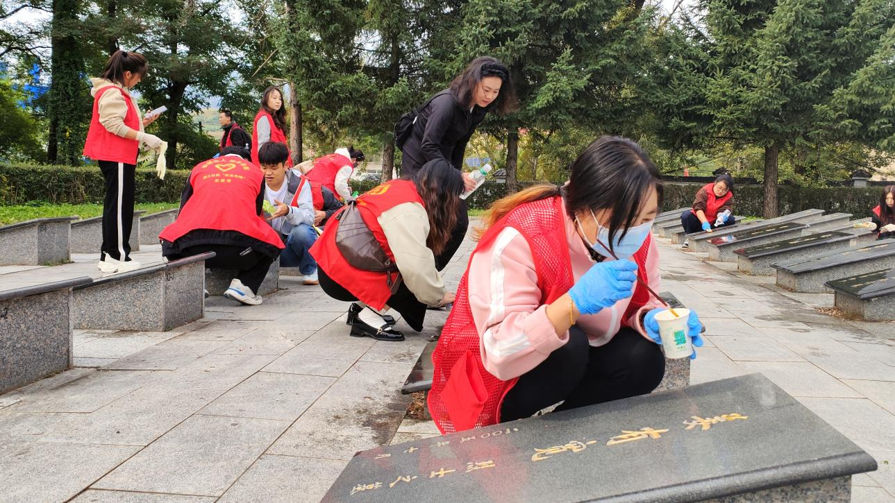 隨后,志愿者們分組展開工作。有人輕拭碑面積塵,有人執描金筆細心勾勒。金漆緩緩填充歲月痕跡,原本斑駁的碑文逐漸清晰,于日光下熠熠生輝。其間,一組外地游客行經陵園,為志愿者們的虔誠舉動吸引。他們駐足良久,細致觀摩描金過程,并與志愿者交流歷史感悟,孩子專注凝視筆尖流轉,家長則低聲講述英烈故事,現場呈現出一幅生動而深刻的紅色教育畫卷。 秋陽傾灑于四保臨江烈士陵園,三十余雙手執筆握布,俯身于青石碑前。筆鋒過處,金漆流轉,歲月模糊的英名重耀光芒;布帛拂過,塵泥盡去,歷史深鐫的豐碑再煥新顏。志愿者們整理工具,凝視墓碑上新描的金漆,一道道金光,猶如穿越時空的橋梁,連接著往昔崢嶸與今朝安寧,無聲訴說著歷史的重量與傳承的溫度。于此四保臨江戰役勝利78周年的特殊時刻,臨江市志愿者們以金漆與汗水,書寫了對革命先輩最深切的緬懷與最崇高的敬意。四保臨江烈士陵園莊嚴肅穆的氛圍,仿佛在告訴今天的人們:歷史不會被遺忘,精神永遠在傳承。 初審:郭小宇 復審:韓鐵英 終審:曹夢南 |