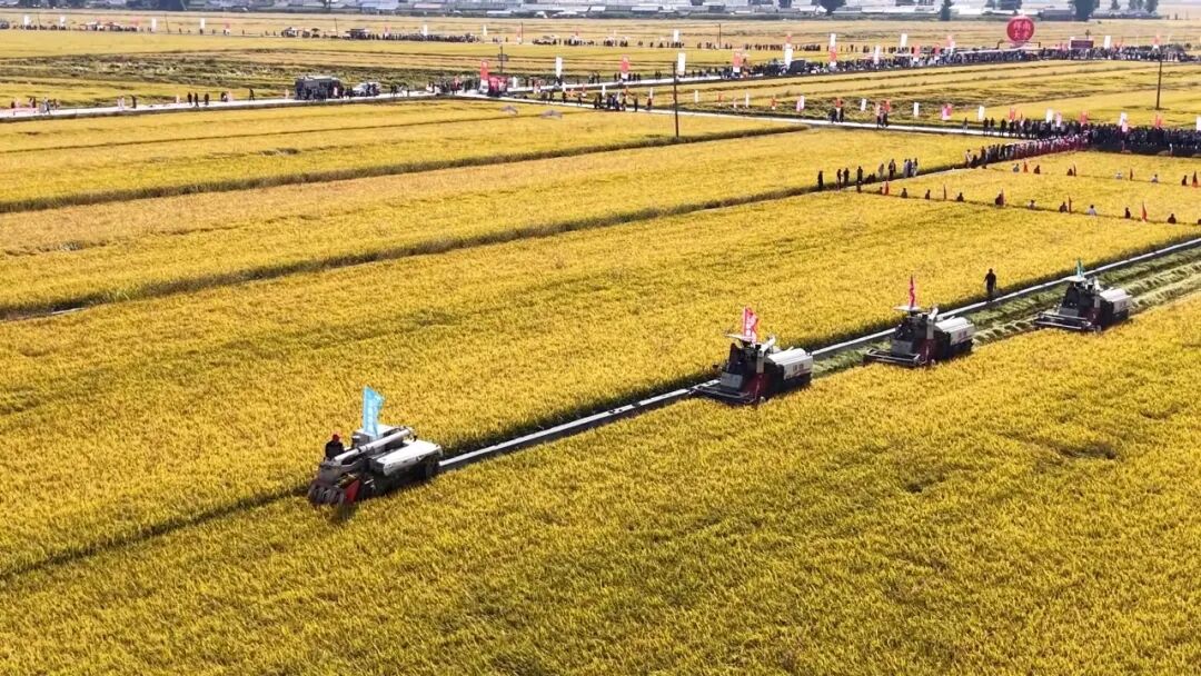 開鐮儀式后,最引人矚目的收割比賽將整場活動推向高潮。比賽現場,選手們展開激烈角逐。他們手持鐮刀,在金色的稻田里展開技藝比拼。鐮刀飛舞間,稻穗應聲而落,選手們動作嫻熟,配合默契,展現出新時代農民精湛的農耕技藝和團結協作的精神風貌。