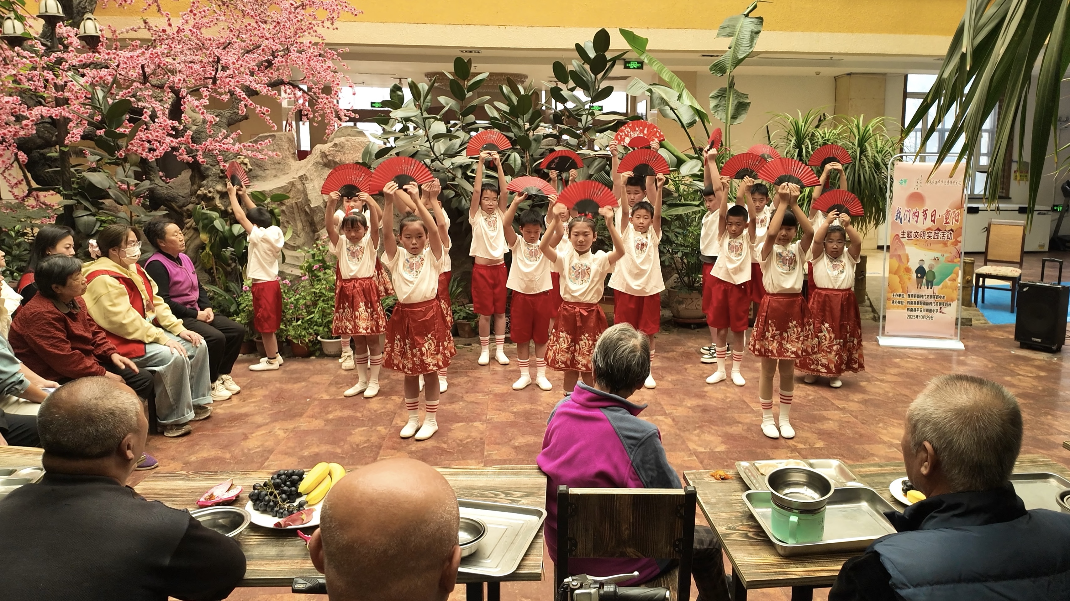 活動現(xiàn)場,志愿者們分工有序,有的清洗食材、調制餡料、搟皮包餃,有的負責清洗分裝水果。不一會兒,飽滿的餃子就擺滿餐盤,水果也整齊裝盤,現(xiàn)場洋溢著溫馨的氣氛。隨著餃子下鍋,平安川明德小學的小朋友們獻上了合唱、舞蹈等節(jié)目,用純真的表演贏得老人們陣陣掌聲,場面溫馨動人。