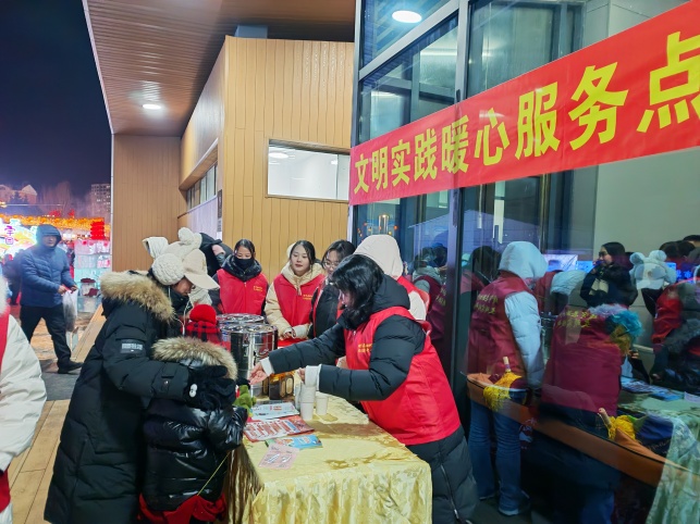 “燈好看,服務更暖心。一杯熱紅棗水,瞬間暖到心坎兒里。”帶著孩子打卡燈會的市民王女士的感慨,道出了眾多游客的心聲。工作人員的暖心服務,讓文明旅游理念走出標語、融入細節,在潛移默化中深入人心,更化作游客的自覺行動。共發放文明旅游宣傳單、布兜240余份,暖心熱貼、腳墊380余個、暖心熱水1200余杯,提供咨詢、指引服務80余次。