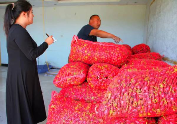 鎮基層治理專干張錚負責記錄,縣司法局駐村第一書記張佳欣負責裝車。張錚說:“今天這大卡車就把12噸辣椒運走,到了成都就成了搶手的火鍋底料。咱們的朝天椒肉厚、色正,品相好!”